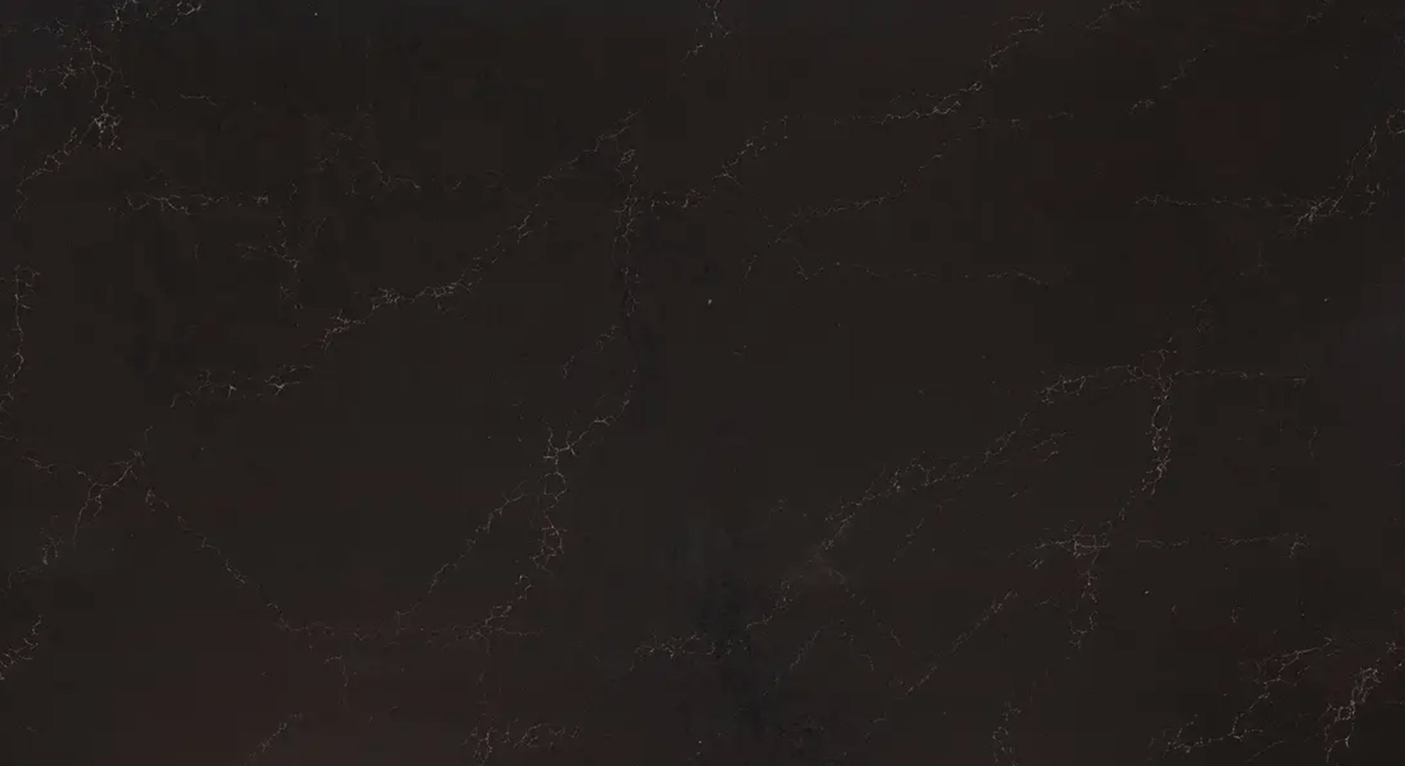 The dark and dramatic charcoal gray surface of Charlestown is imprinted with meandering gray and white veining above faint black currents that ripple below the surface.