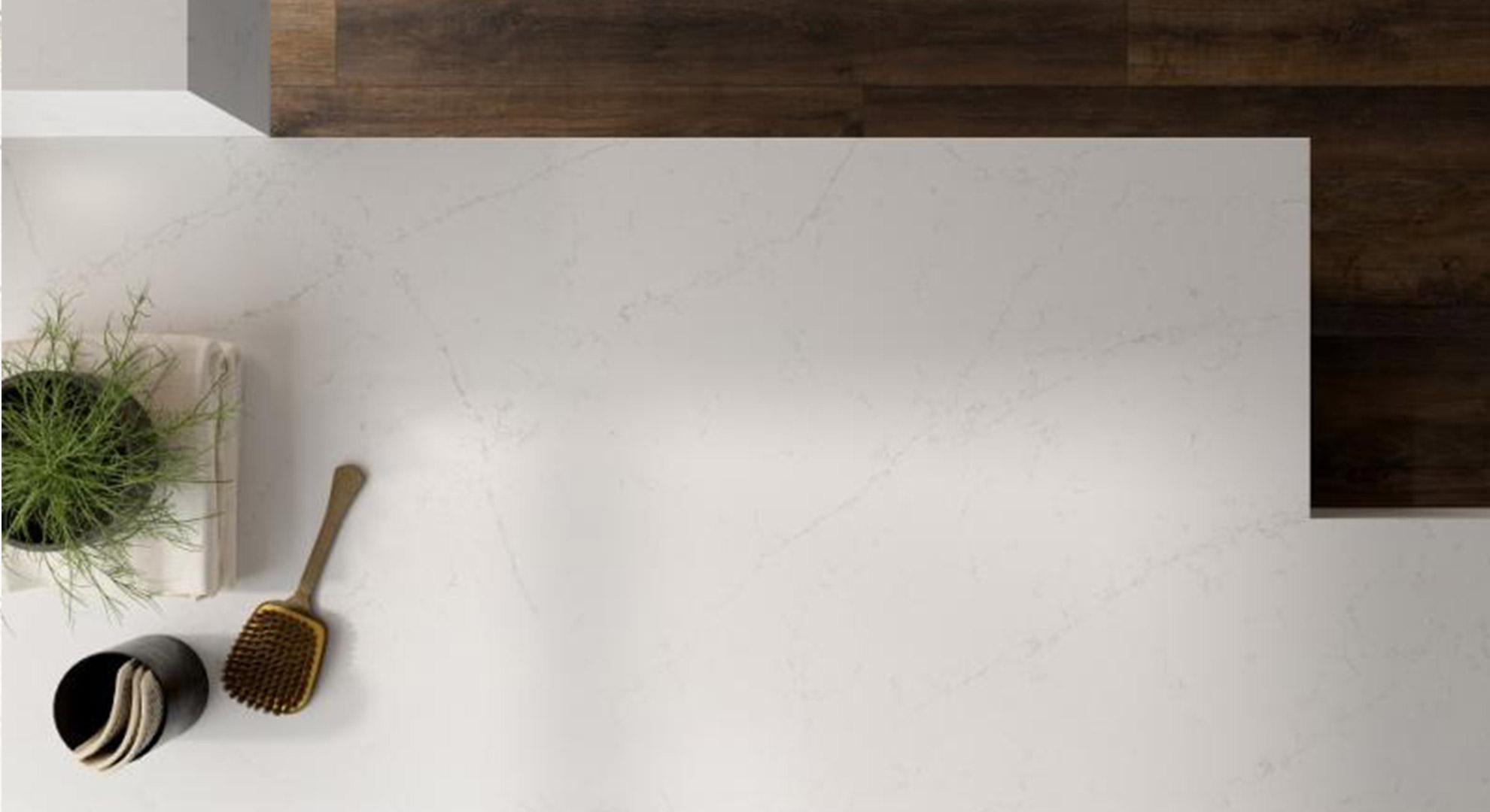 Etude is a warm bright white design with gray and gold long thin veins that criss cross the slab. The warm colors are subtle and soft, making this a classic look.